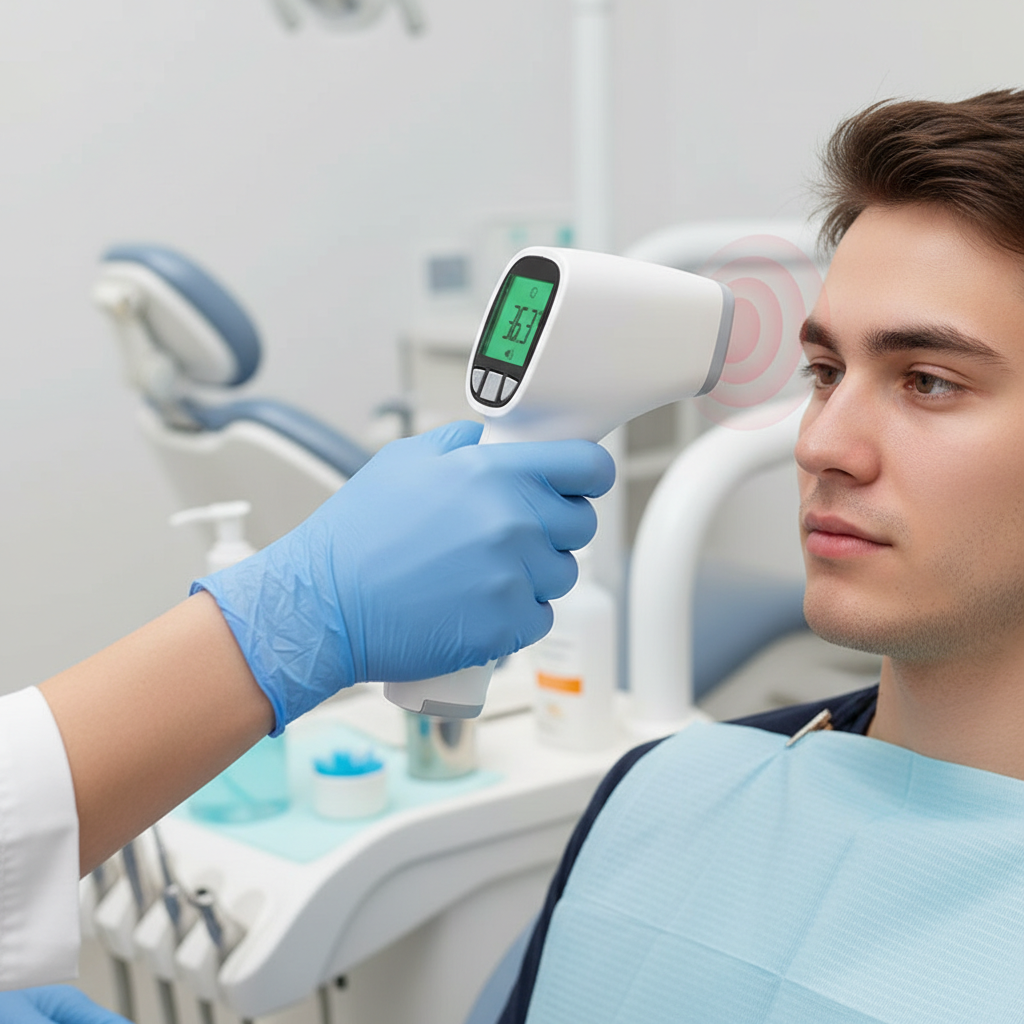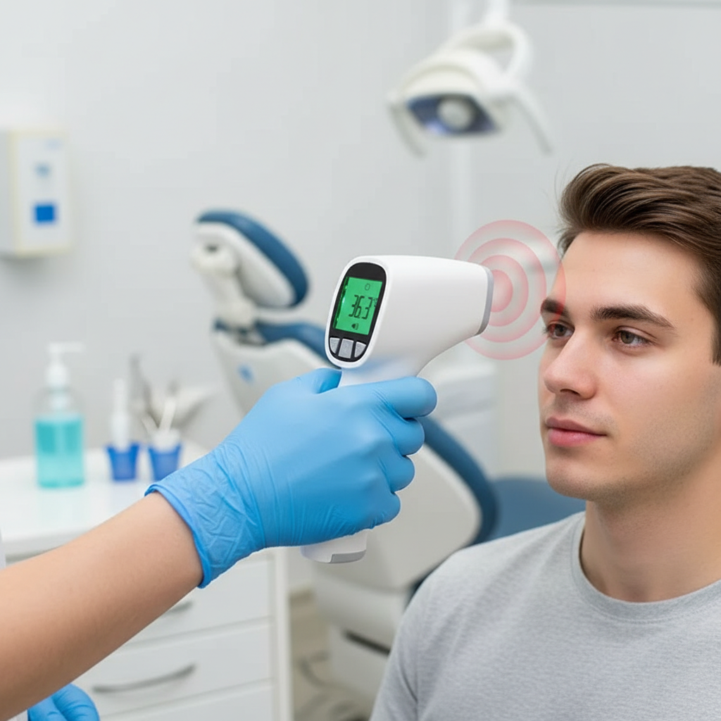 • Termometro a infrarossi è uno strumento che usa il principio della ricezione a infrarossi per misurare la temperatura del corpo umano. Durante l'utilizzo, basta puntarlo sulla fronte o sulla cavità auricolare dell'orecchio e premere il tasto per misurare rapidamente e accuratamente la temperatura del corpo umano.