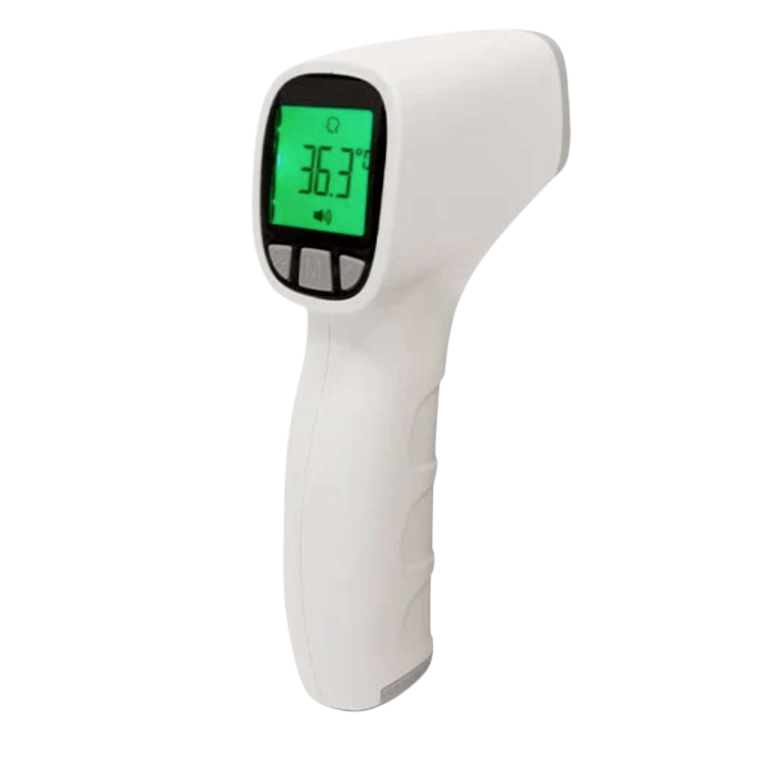 - Termometro a infrarossi è uno strumento che usa il principio della ricezione a infrarossi per misurare la temperatura del corpo umano. Durante l'utilizzo, basta puntarlo sulla fronte o sulla cavità auricolare dell'orecchio e premere il tasto per misurare rapidamente e accuratamente la temperatura del corpo umano.