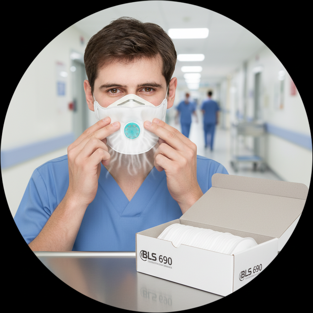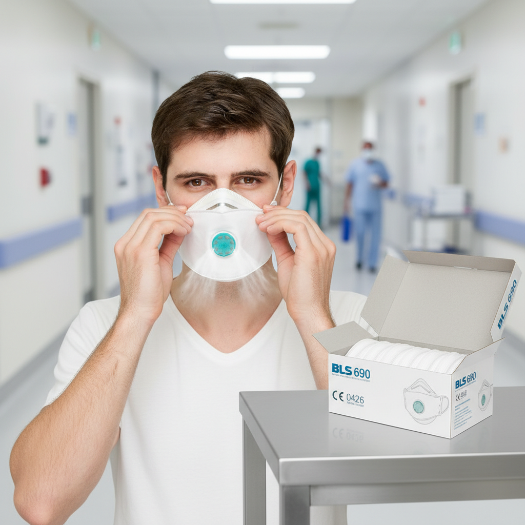 - Nasello stringinaso interno a due strati di tessuto per ridurre le parti in alluminio ed evitare contaminazioni del prodotto.
